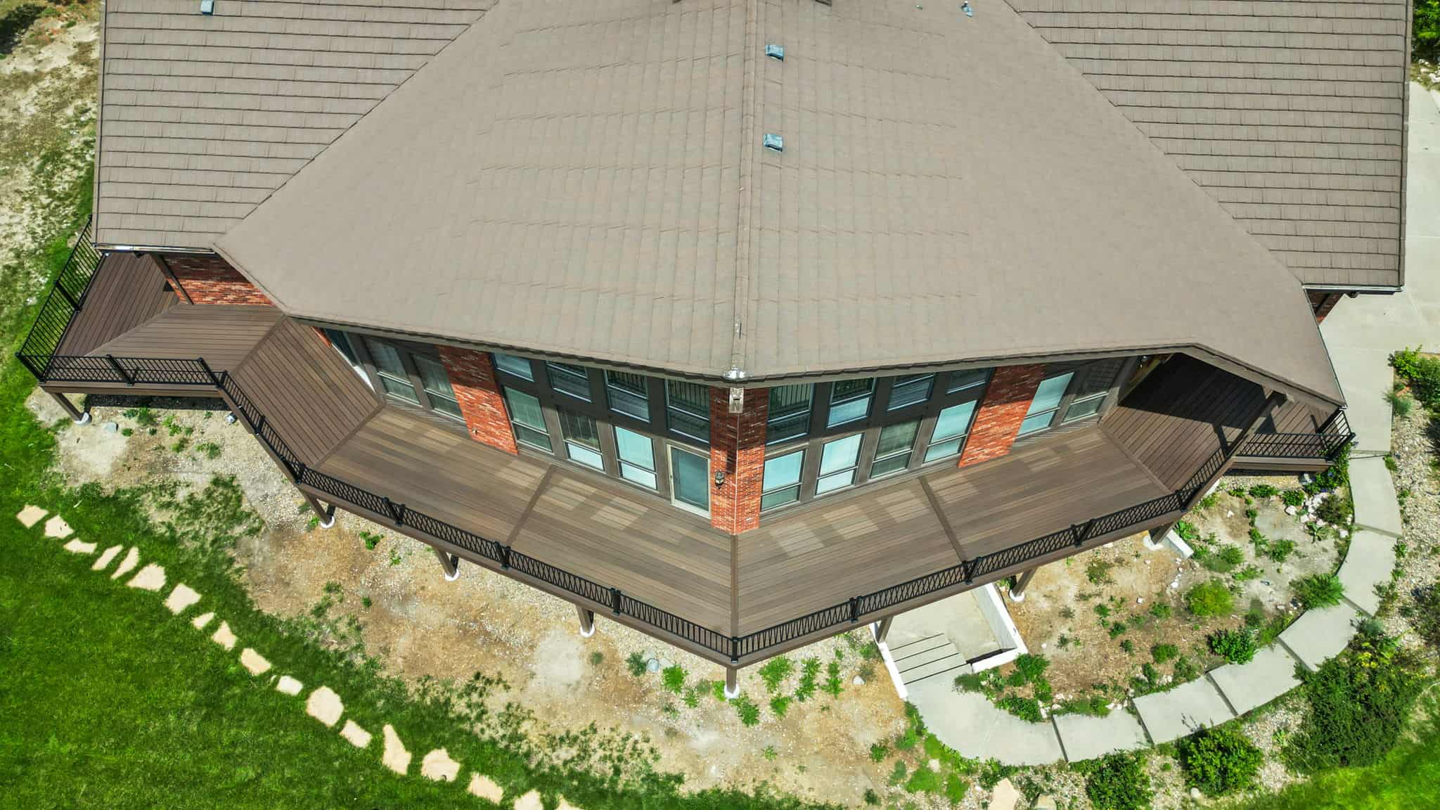 This was a fun project to build. This deck covers 930 square feet of composite decking. Showcasing here is Fiberon Sanctuary decking in Espresso for a warm, refined look.